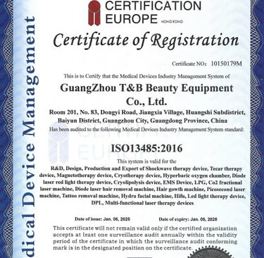 Our manufacturer operates under a certified Medical Devices Quality Management System (ISO 13485:2016). This guarantees consistent design, production, and quality control across every chamber.